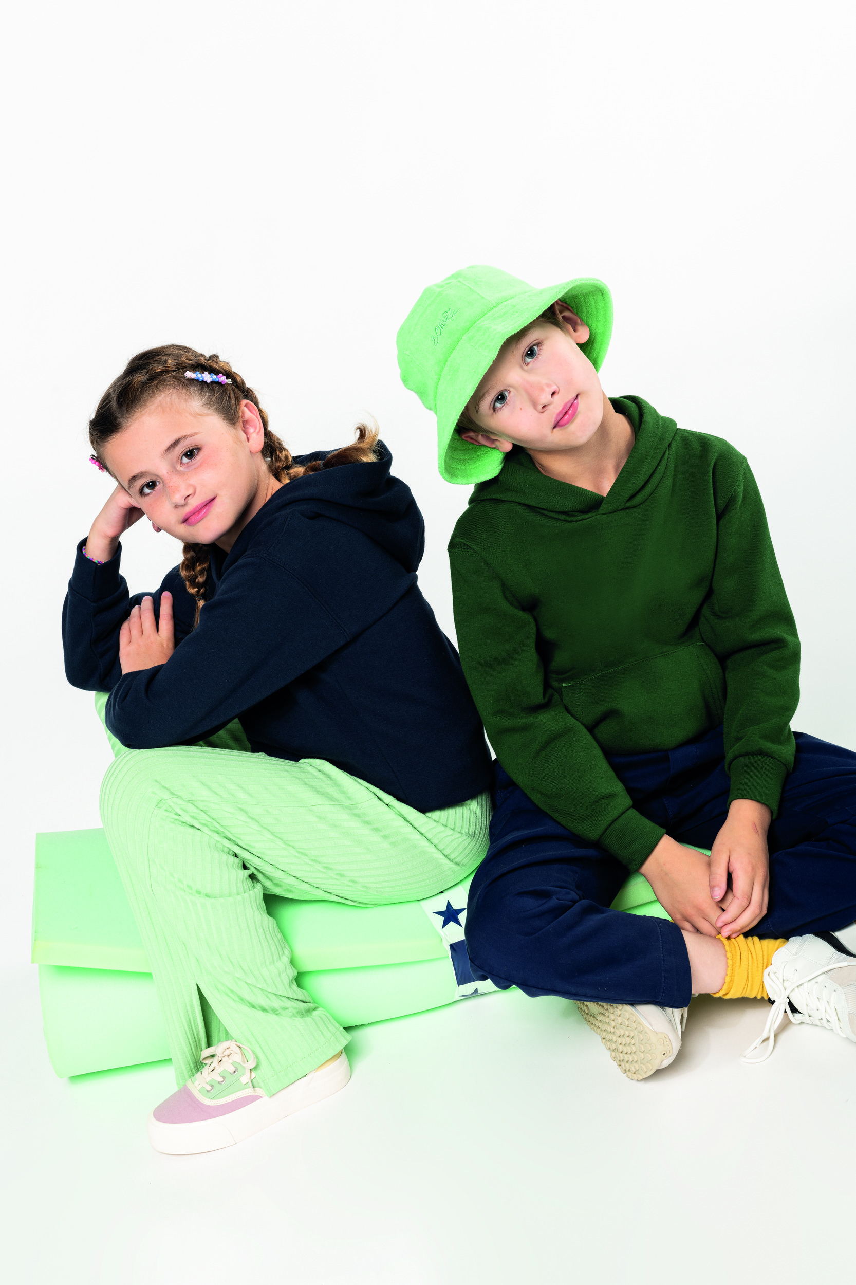 80% coton / 20% polyester. Molleton gratté. Manches montées. Capuche doublée. Poches Kangourou. Finition bord-côte bas de manches et de vêtement.